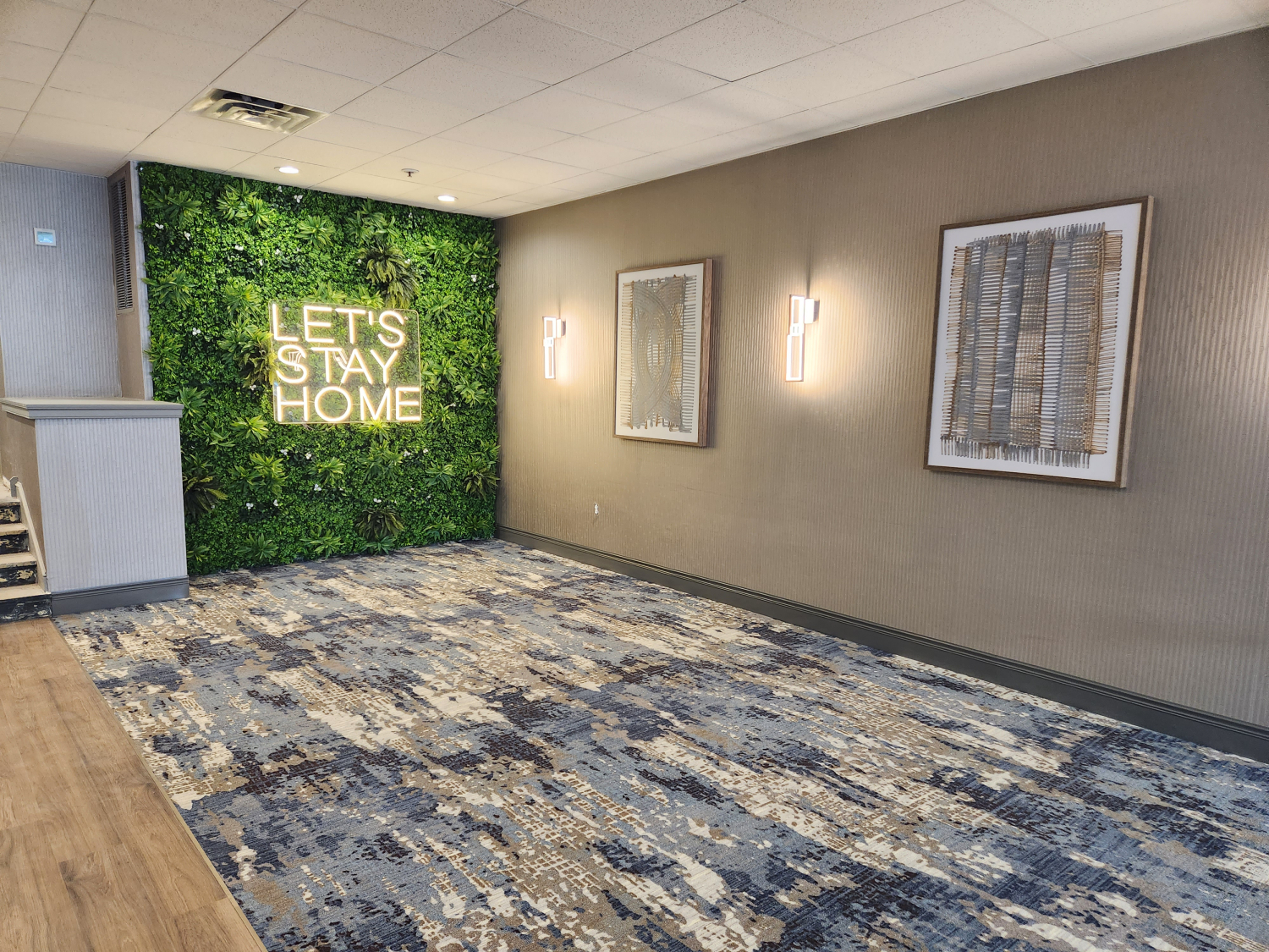 At Morgan Properties’ landmark Millennium Complex in Conshohocken, we created a striking green-wall installation featuring their “Let’s Stay Home” motif - lush artificial foliage crafted into custom signage and integrated into the lobby experience to reflect the company’s emphasis on community, purpose, and place. Meanwhile, at their Ash Street location, Artificial Plants Unlimited provided sculptural artificial plants placed in custom-designed planters, enhancing amenity areas with resilient greenery and refined stylings.